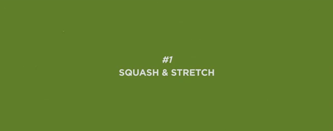 스쿼시&스트래치는 물체가 외부의 힘에 의해 변형되는 상황을 과장해서 표현하는 방법이다. 스쿼시&스트래치의 가장 큰 장점은 어떤 씬(오브젝트)도 지루하지 않게 만든다는 점이다. 힘과 힘이 마주치는 상황에서 특정 물체의 비율을 조절하면서 형태를 변경하는 것만으로도 시선을 사로잡을 수 있기 때문이다.