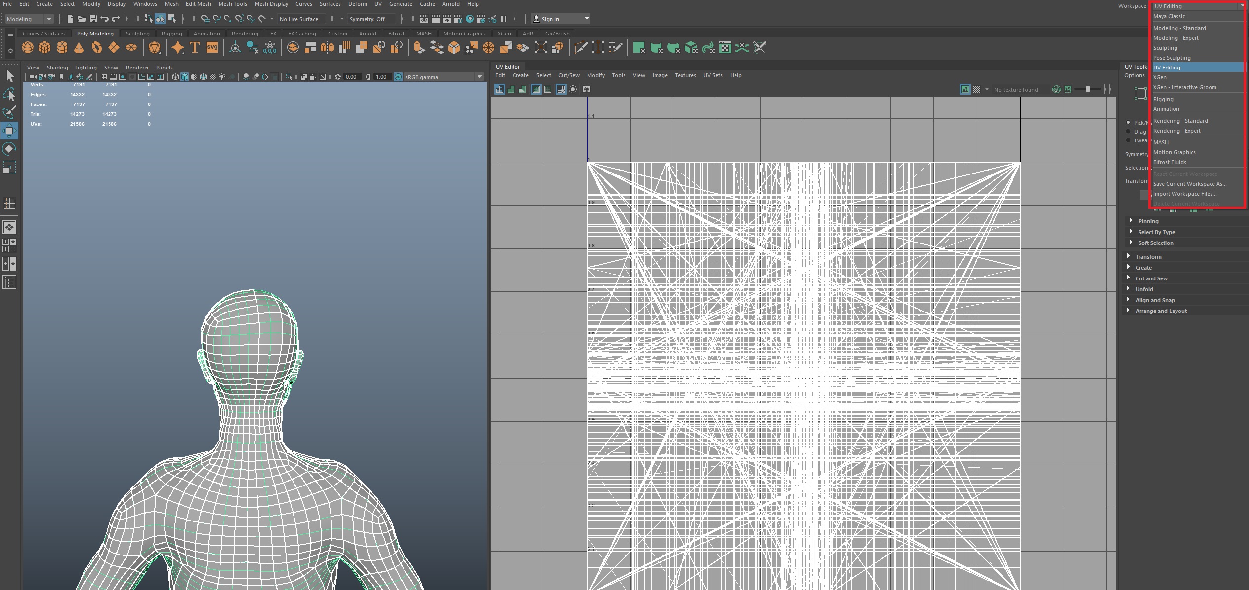 UV작업을 위해서는 전체 GUI를 UV Editor모드로 전환한다.