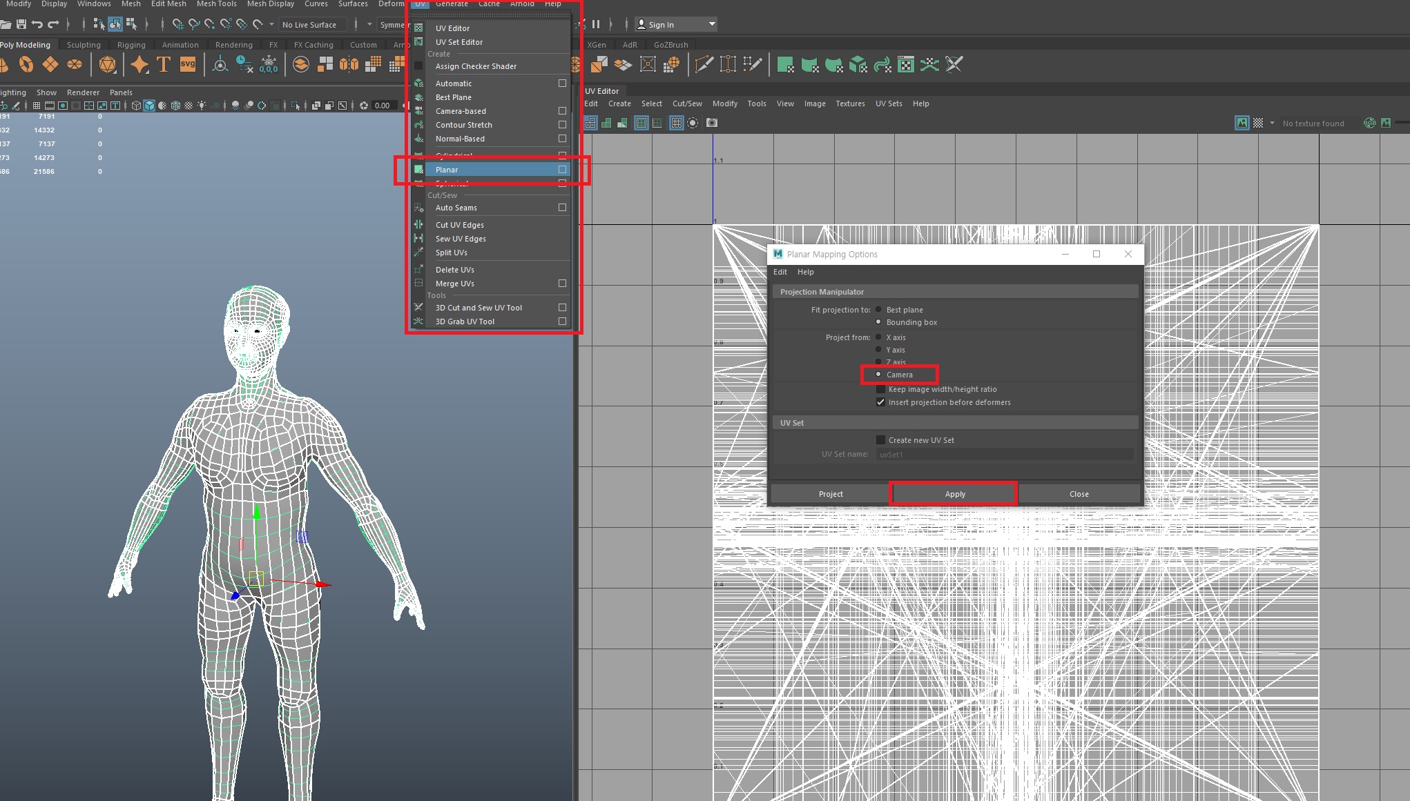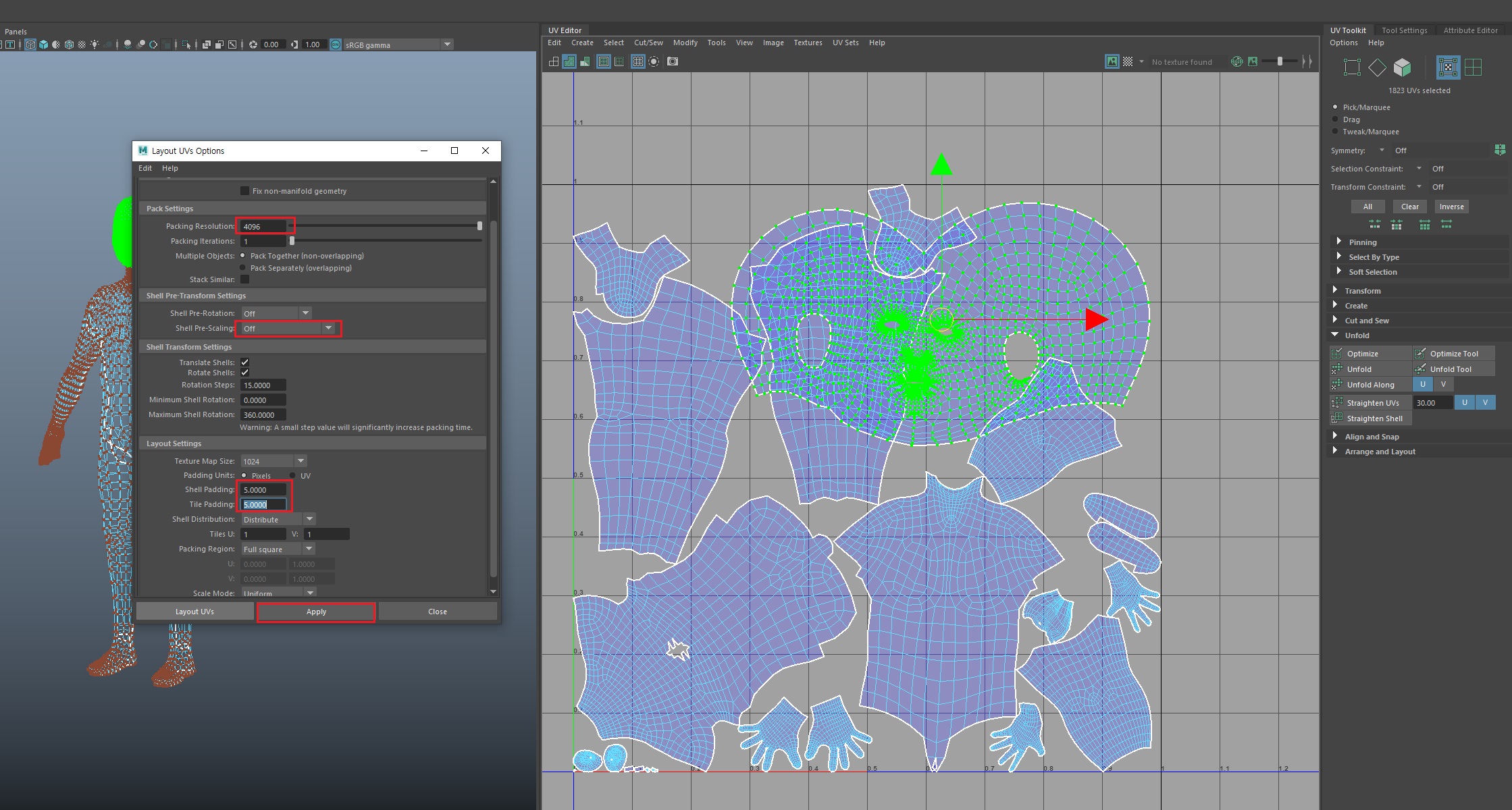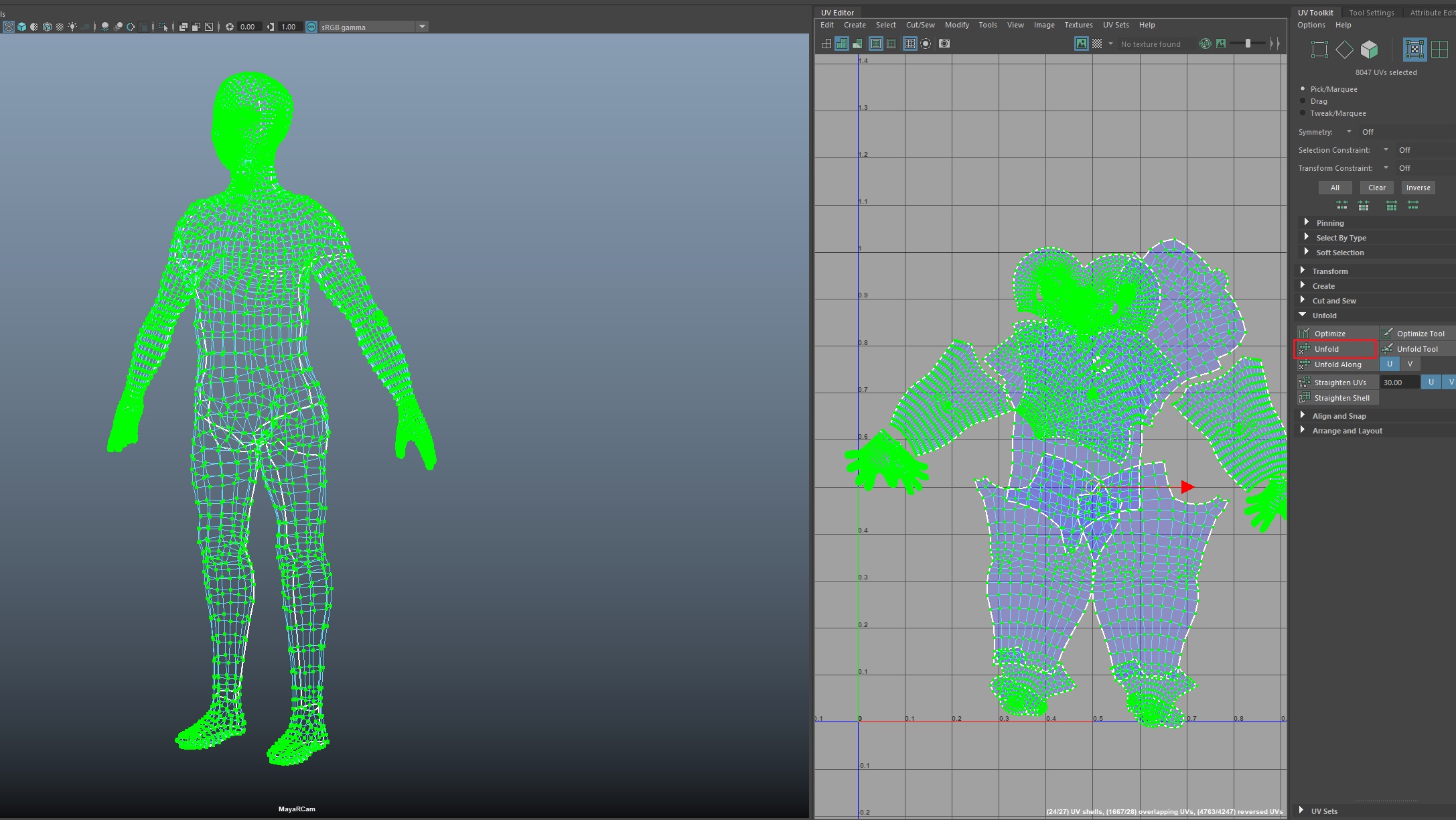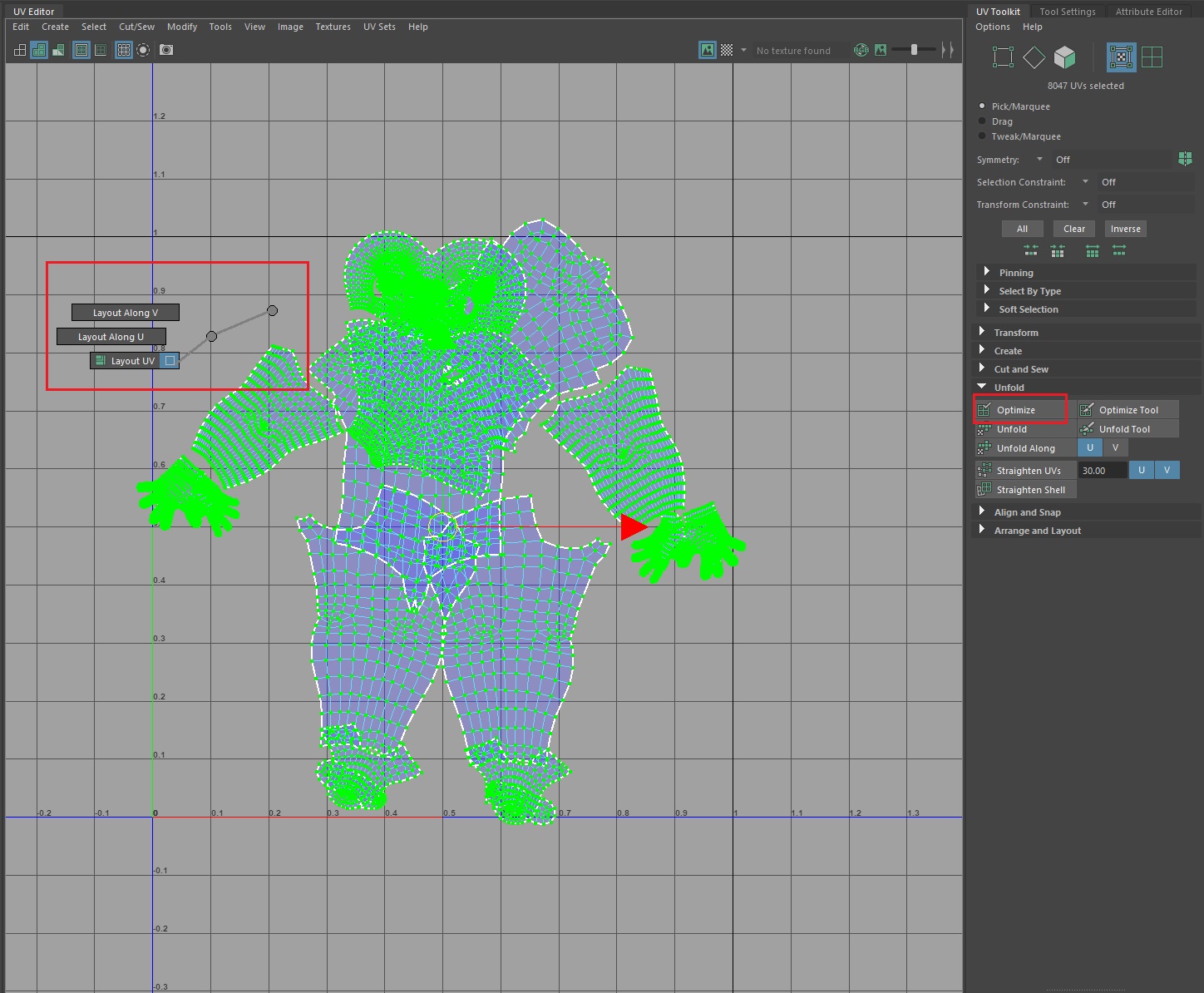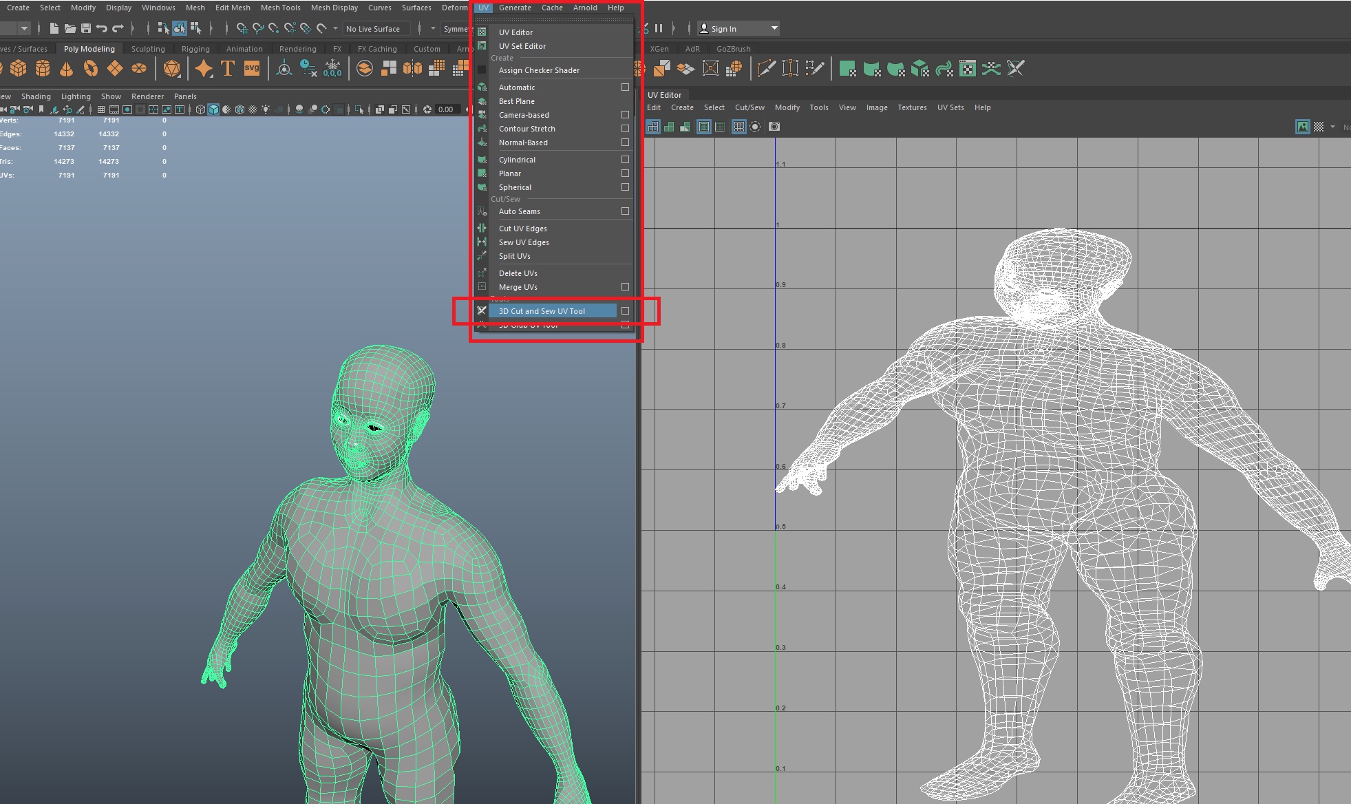 이를 위해, UV메뉴에서 '3D Cut and Sew UV Tool'을 선택한다.