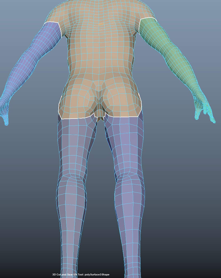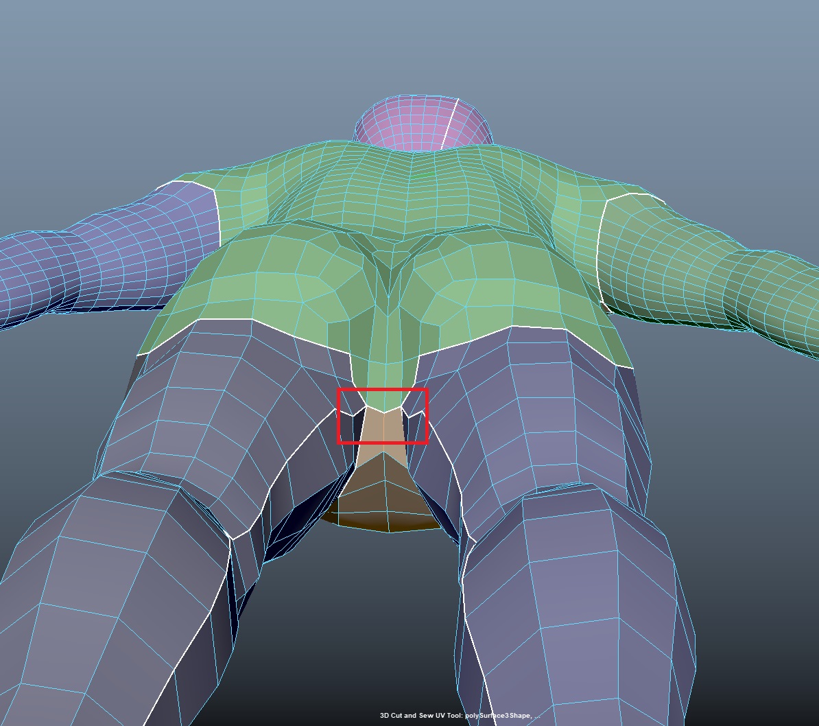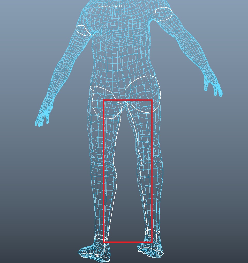 다리 안쪽의 uv선을 따라 하체와 상체를 나눠야 한다.
