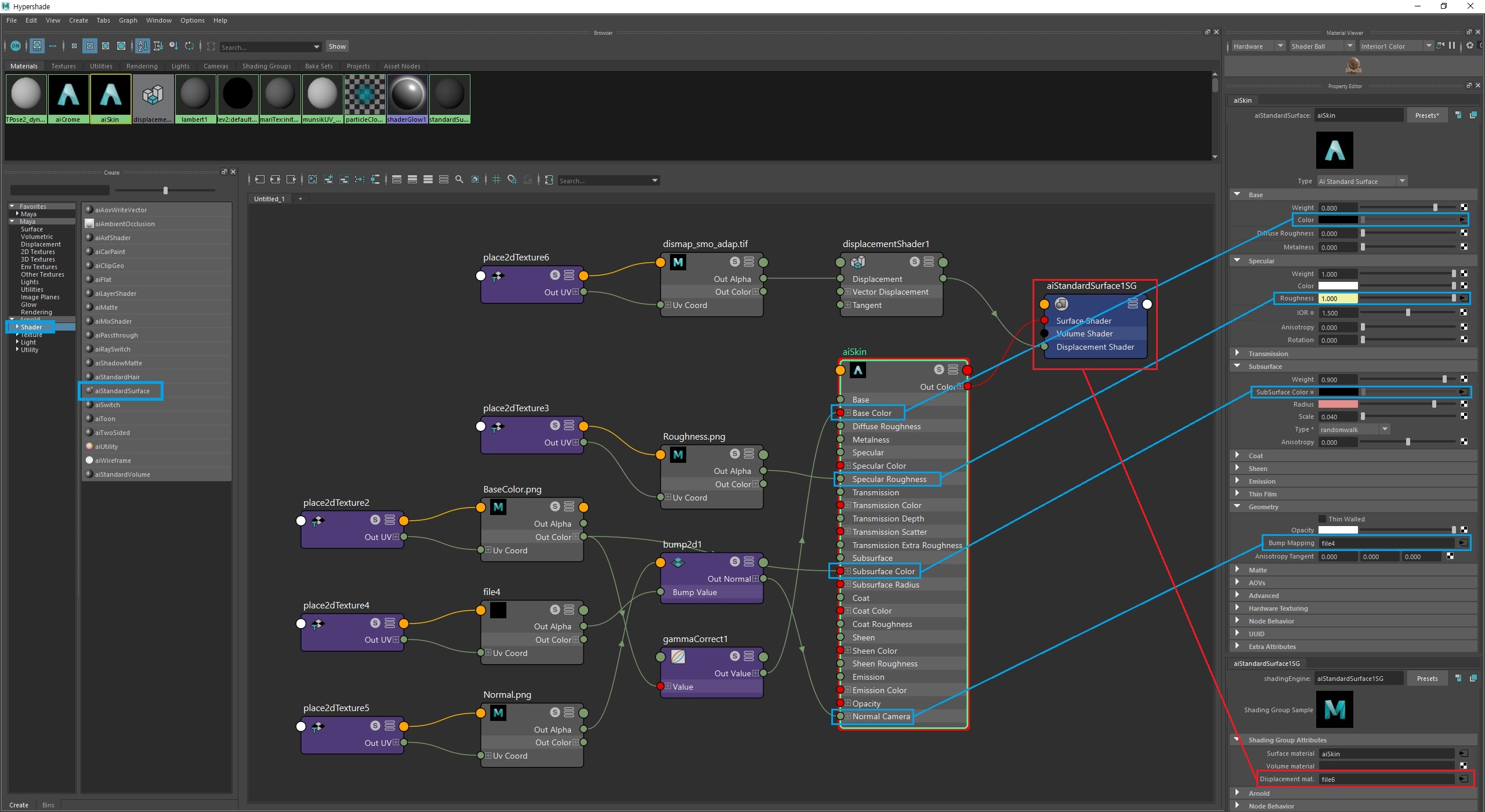 ai StandardSurface쉐이더를 생성하고,