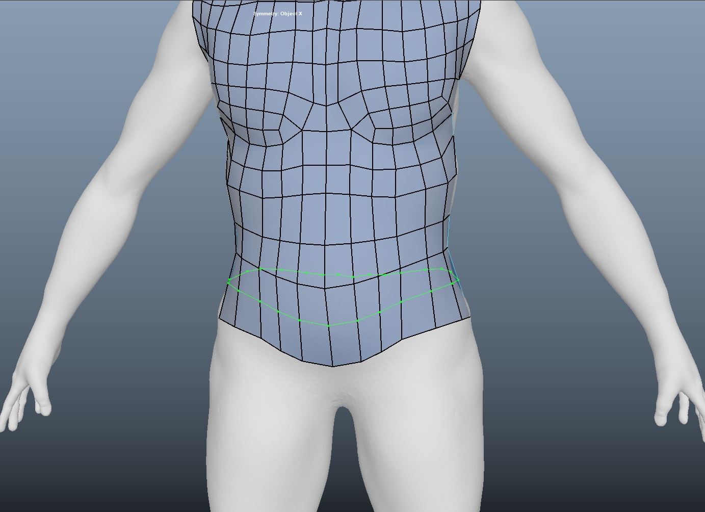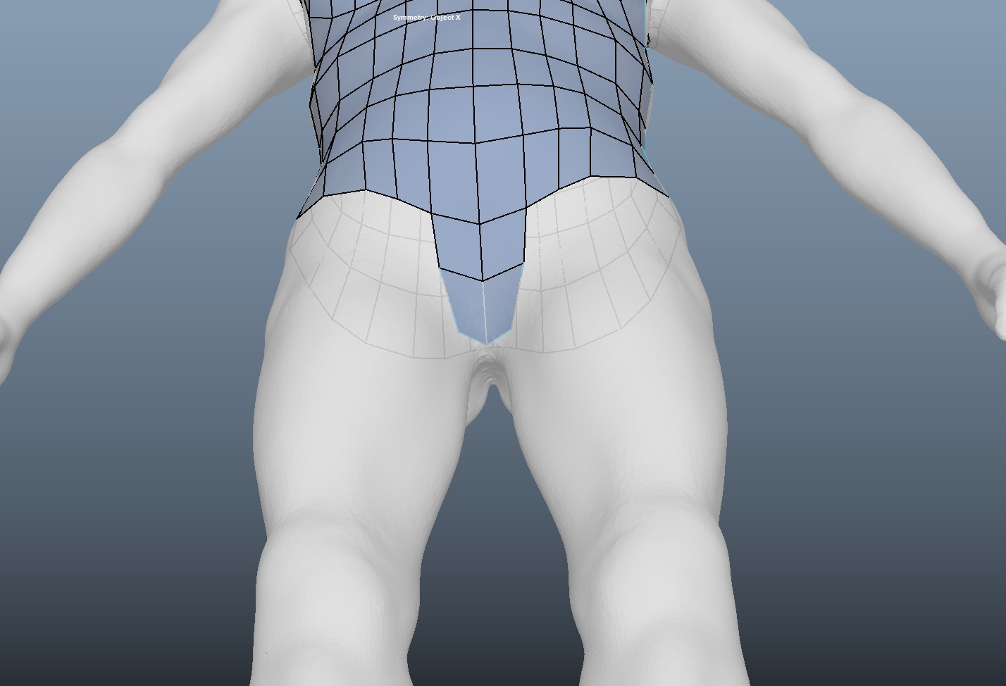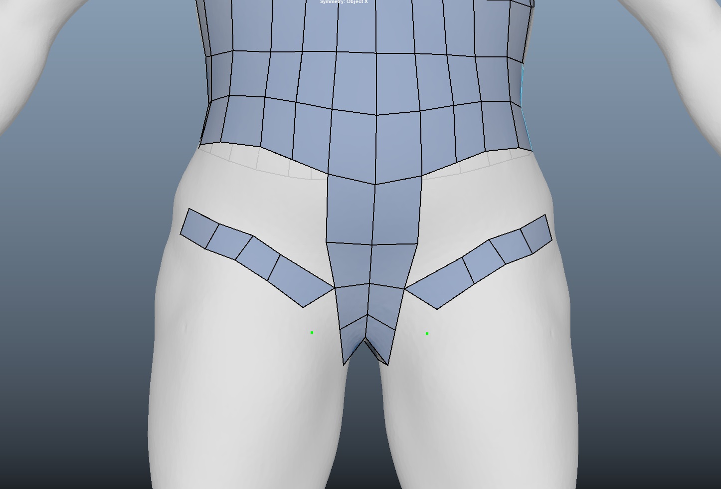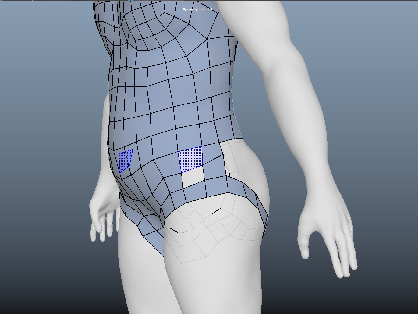 허벅지 라인이 완성되면 골반 부분은 자동으로 생성된다. 옆구리 부분의 면을 아래와 같이 채우자.