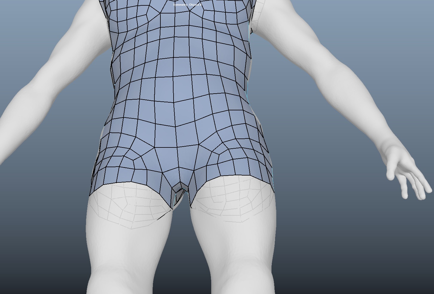 허벅지 면을 생성하기 전에 T라인은 상당히 중요하다. T라인이 없으면 애니메이팅 동작이 마치 '레고 장난감'처럼 현실감 없이 앞뒤로 다리가 움직이다. 초보자가 하기 쉬운 실수인 만큼 T라인을 확실하게 잡아준다.
