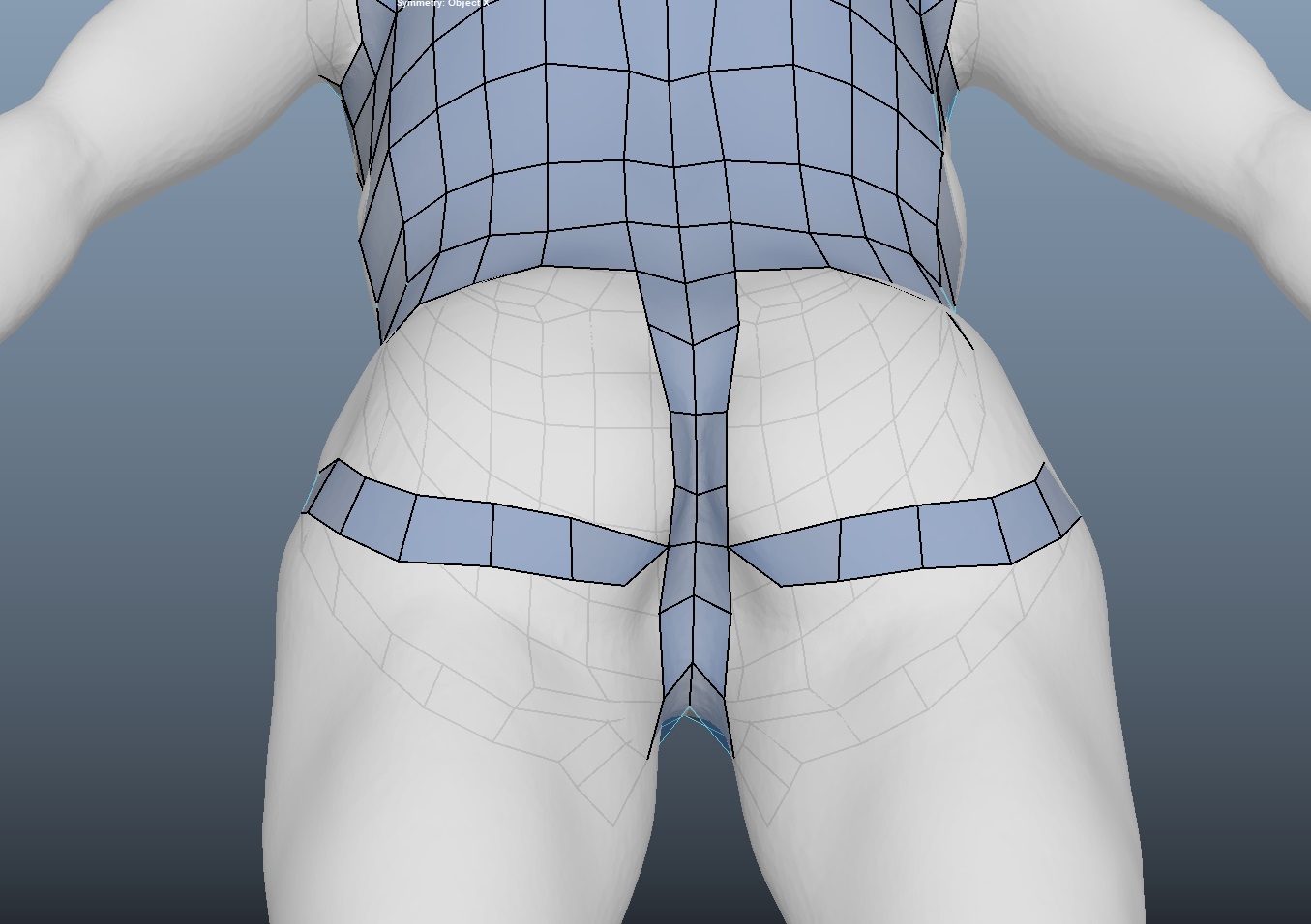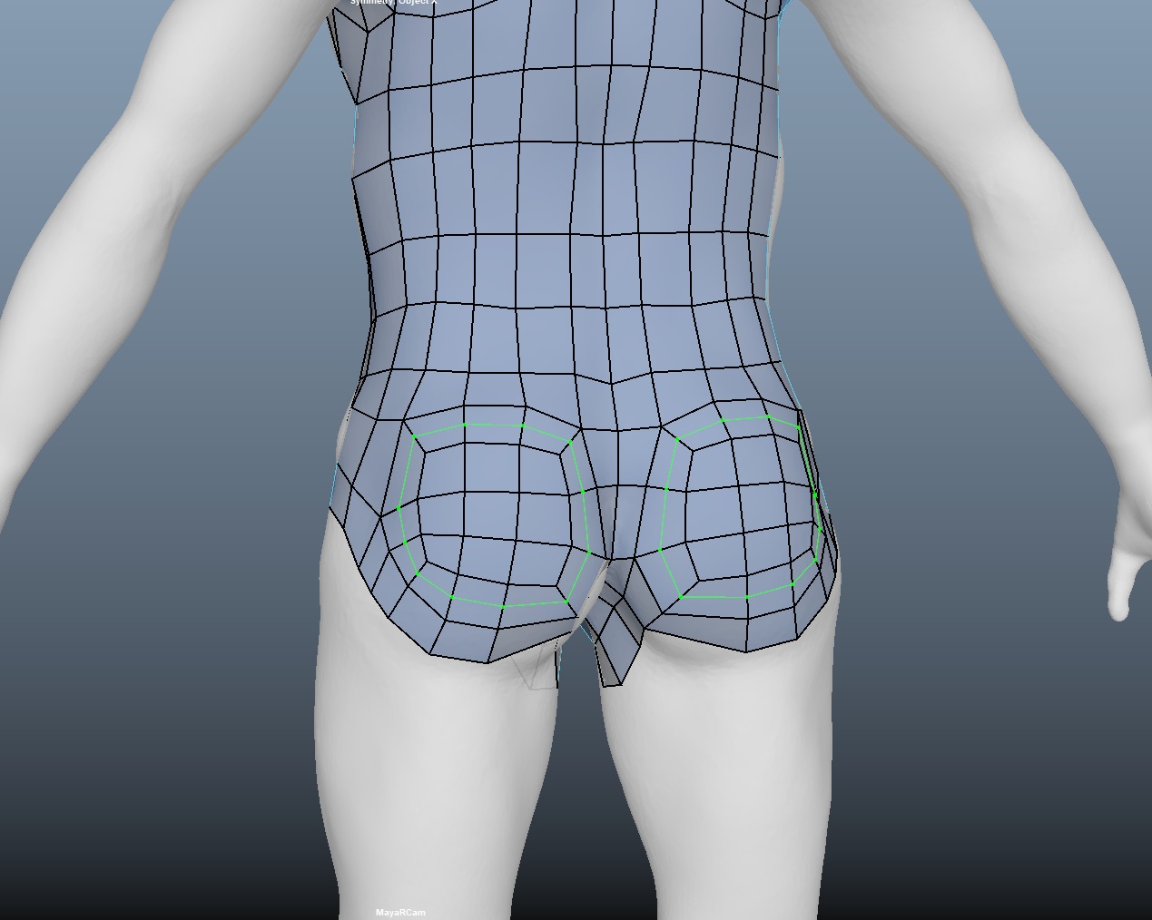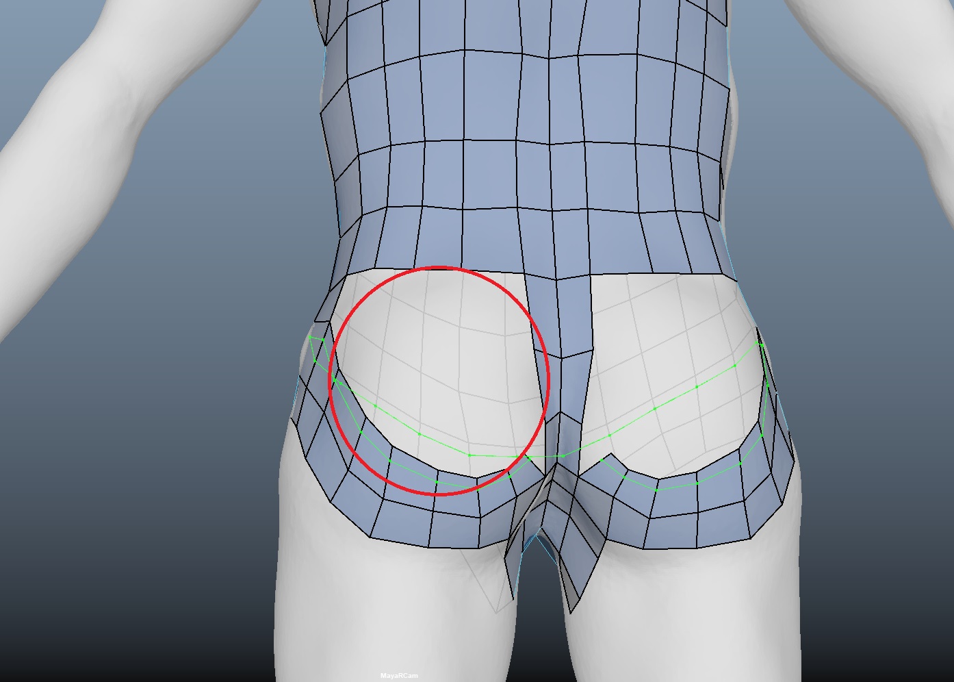 엉덩이 부위는 내부의 라인이 둥근 원으로 연결되게끔 면을 그려준다. (언제든지 라인추가 가능)
