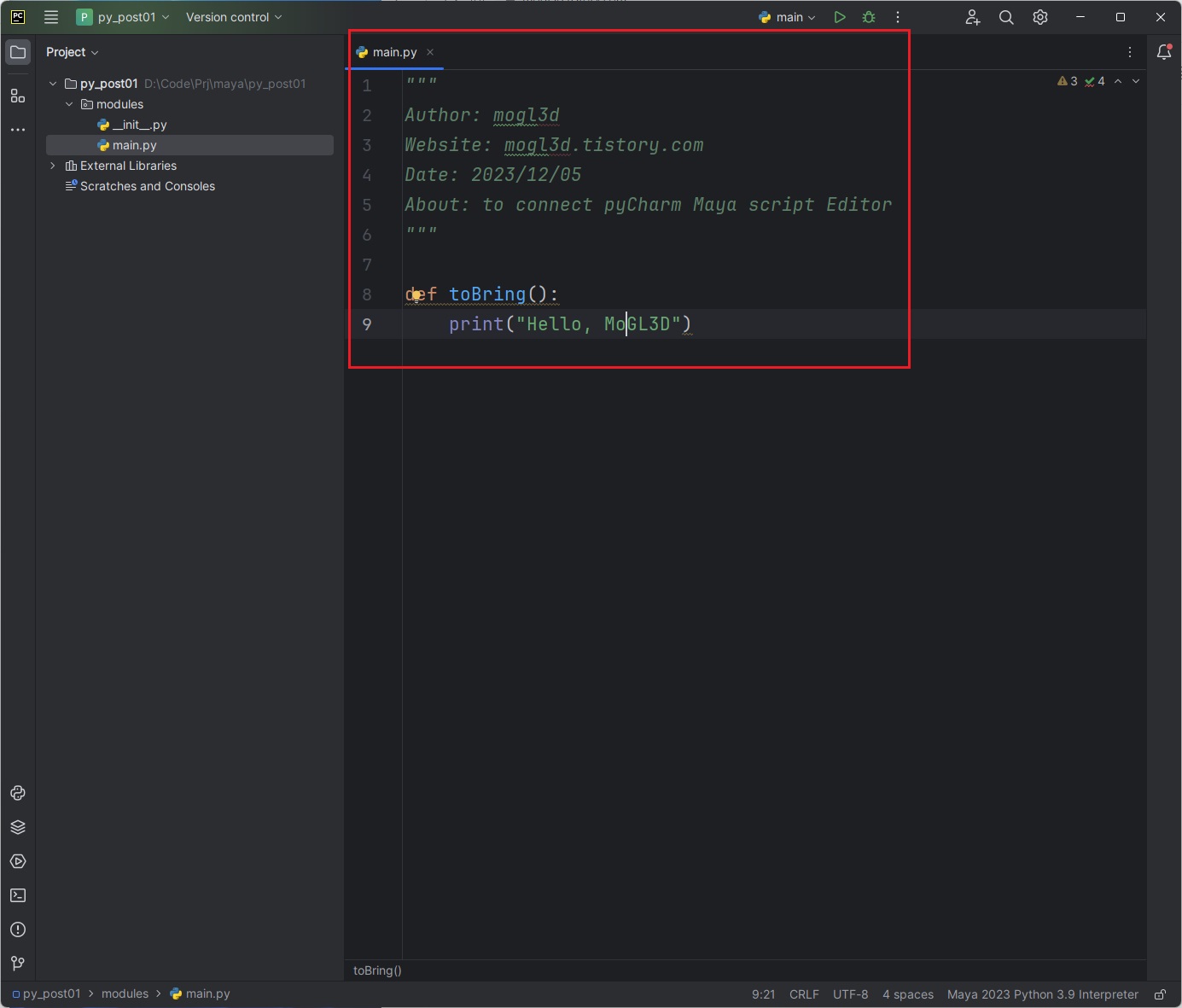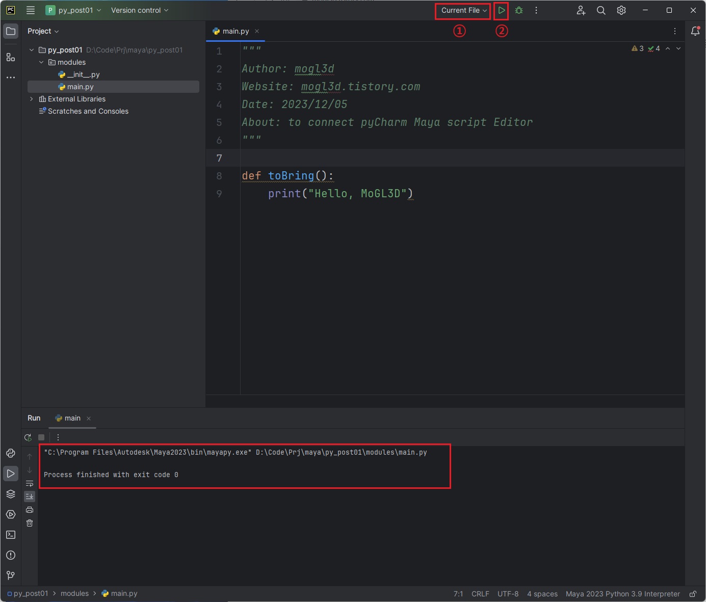 이번 포스팅에서는 의외로 연결이 어려운(?) Maya의 script에디터와 pyCharm을 연결하는 방법을 알아보자.