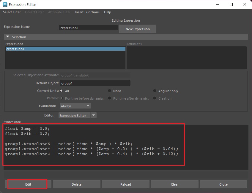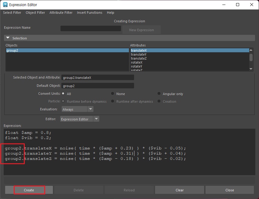 나머지 그룹의 Expression도 아래와 같이 설정해준다.