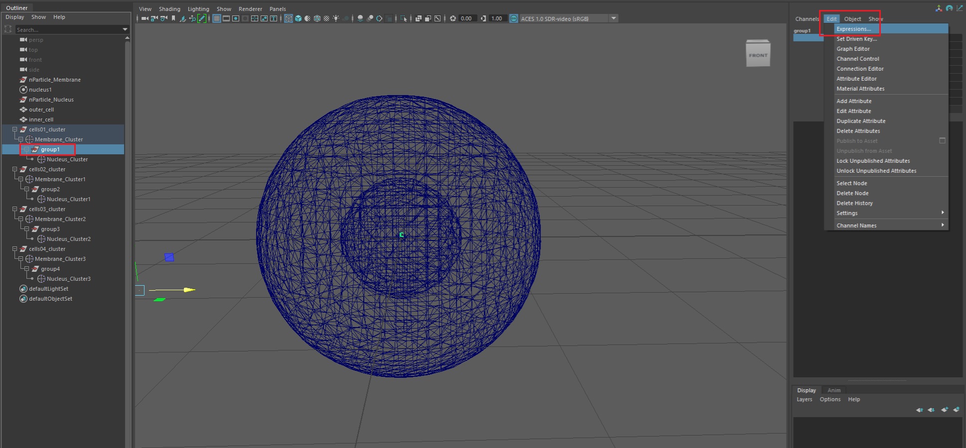 그런데 세포 내부의 핵은 불규칙적으로 움직이므로 이를 표현하기 위해서는 Maya의 Expression이 필요하다.