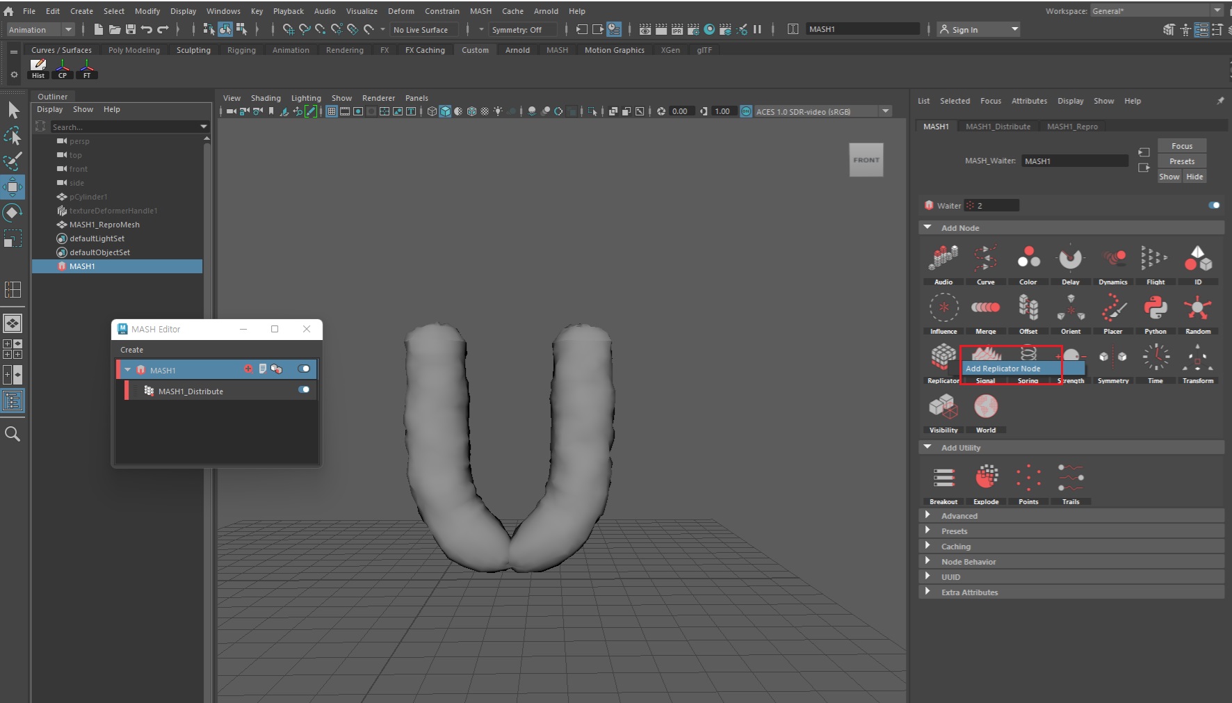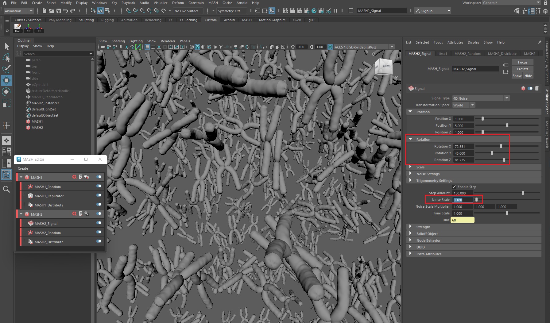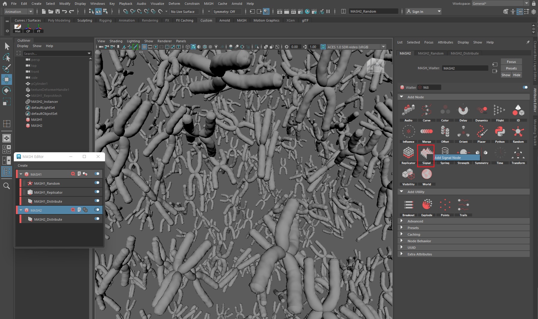 마지막으로 모션을 추가하기 위해 MASH > Signal노드를 추가한다.