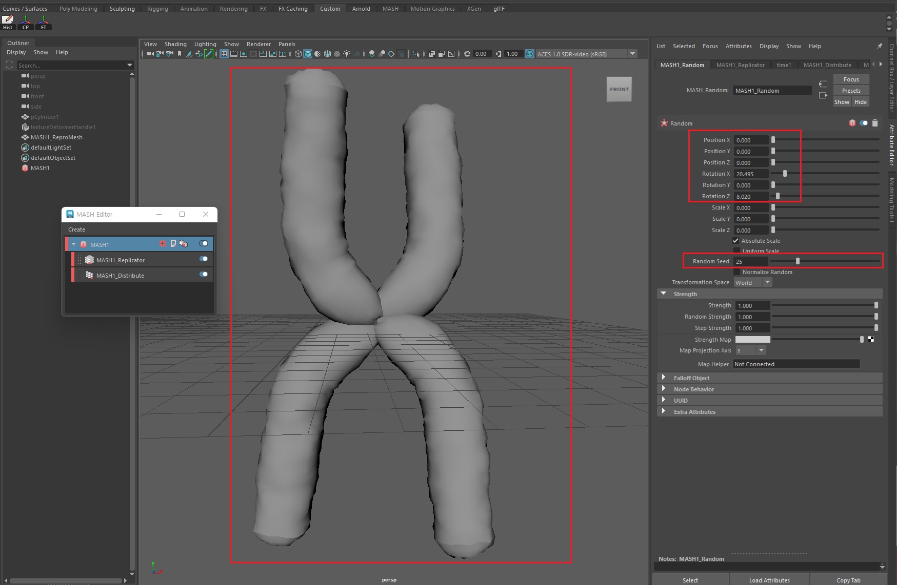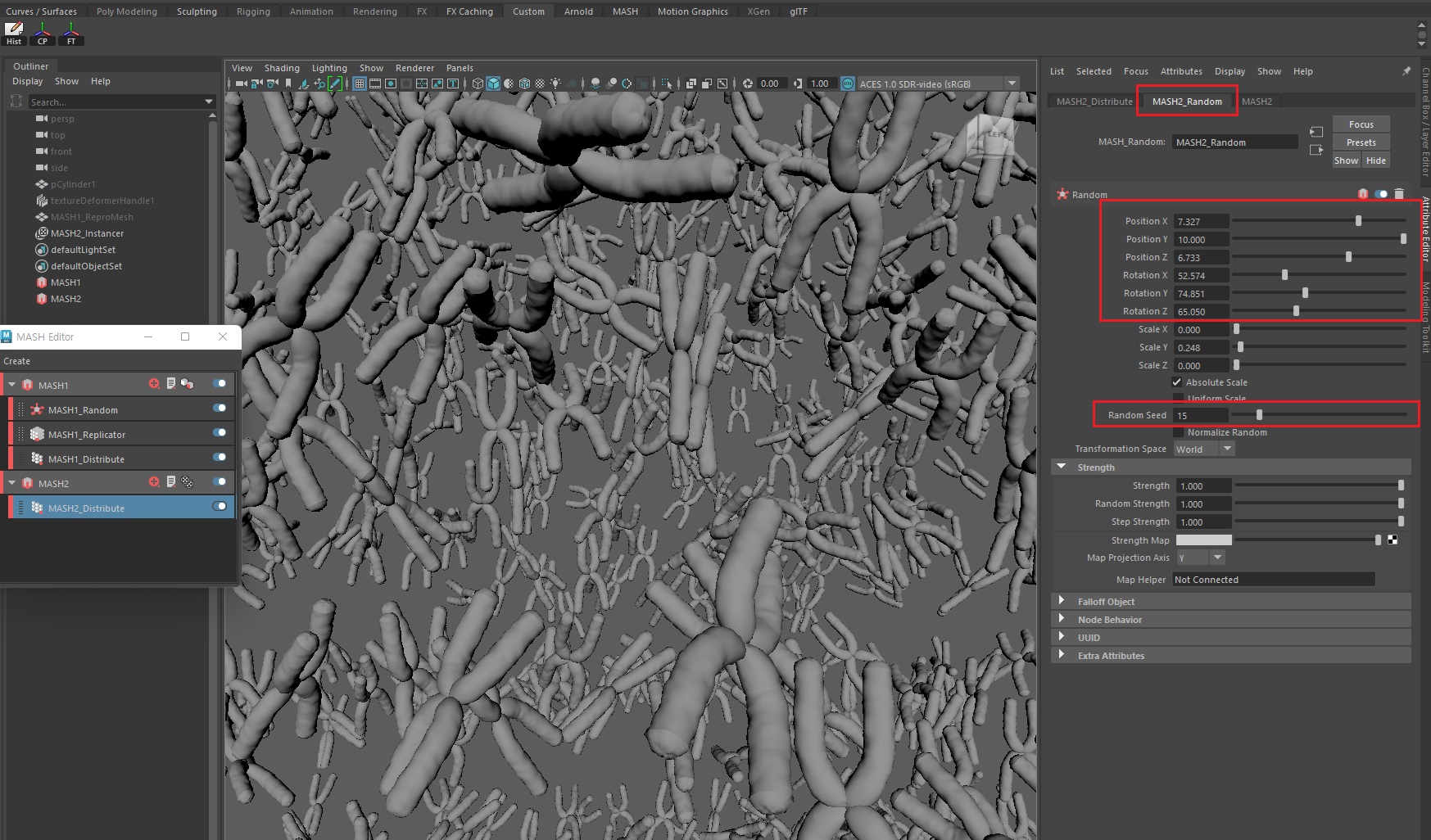 현재 염색체가 너무 올바르게 서 있기 때문에 자세를 조금 불량하게(?) 만들 필요가 있다. MASH > Random노드를 실행보자.
