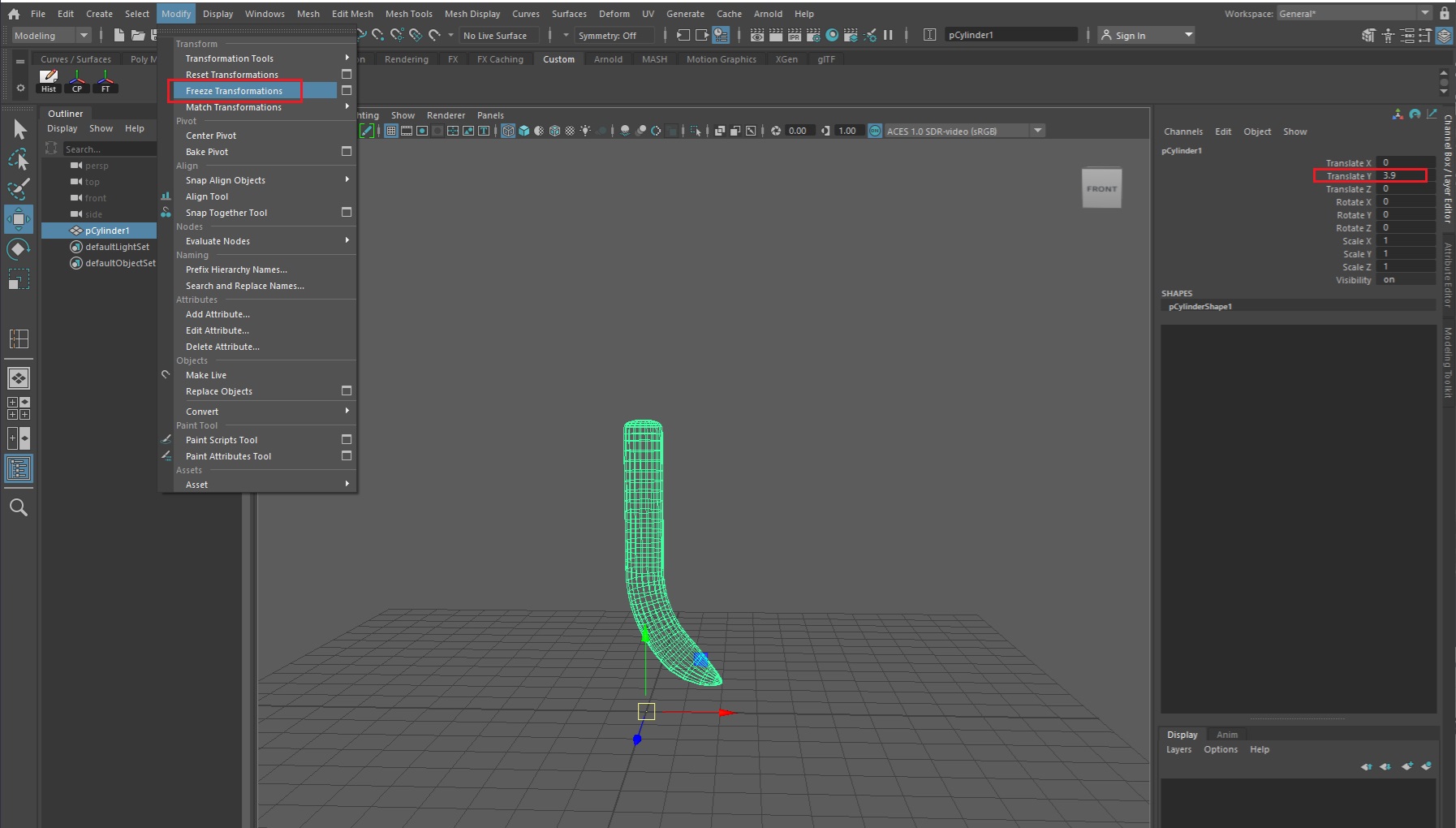 훗날 MASH를 실행했을 때 중심점을 잡기 위해 현재 위치를 원점으로 만들어줘야 한다. 이를 위해 Modify > Freeze를 실행한다.(현재 위치가 중점이 됨)