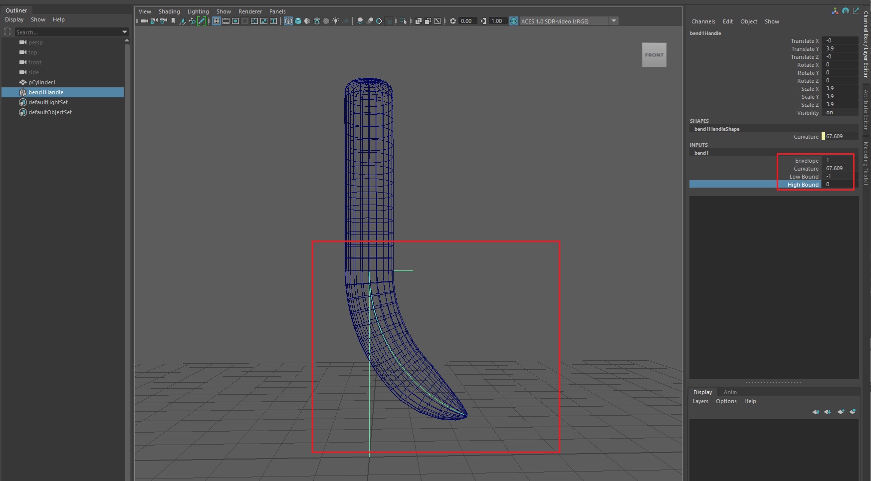 우측 bend 속성창에서 하단부만 구부러뜨린다.(속성 참고) 부러질 일 없으니 걱정말고 강하게 밀어붙이자.
