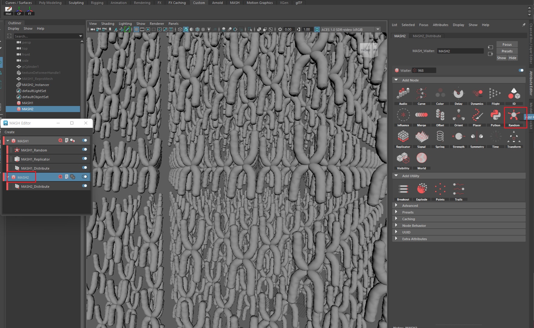 Grid에 일렬로 서 있는 염색체가 다소 어색하므로 MASH > Random노드를 추가한다.